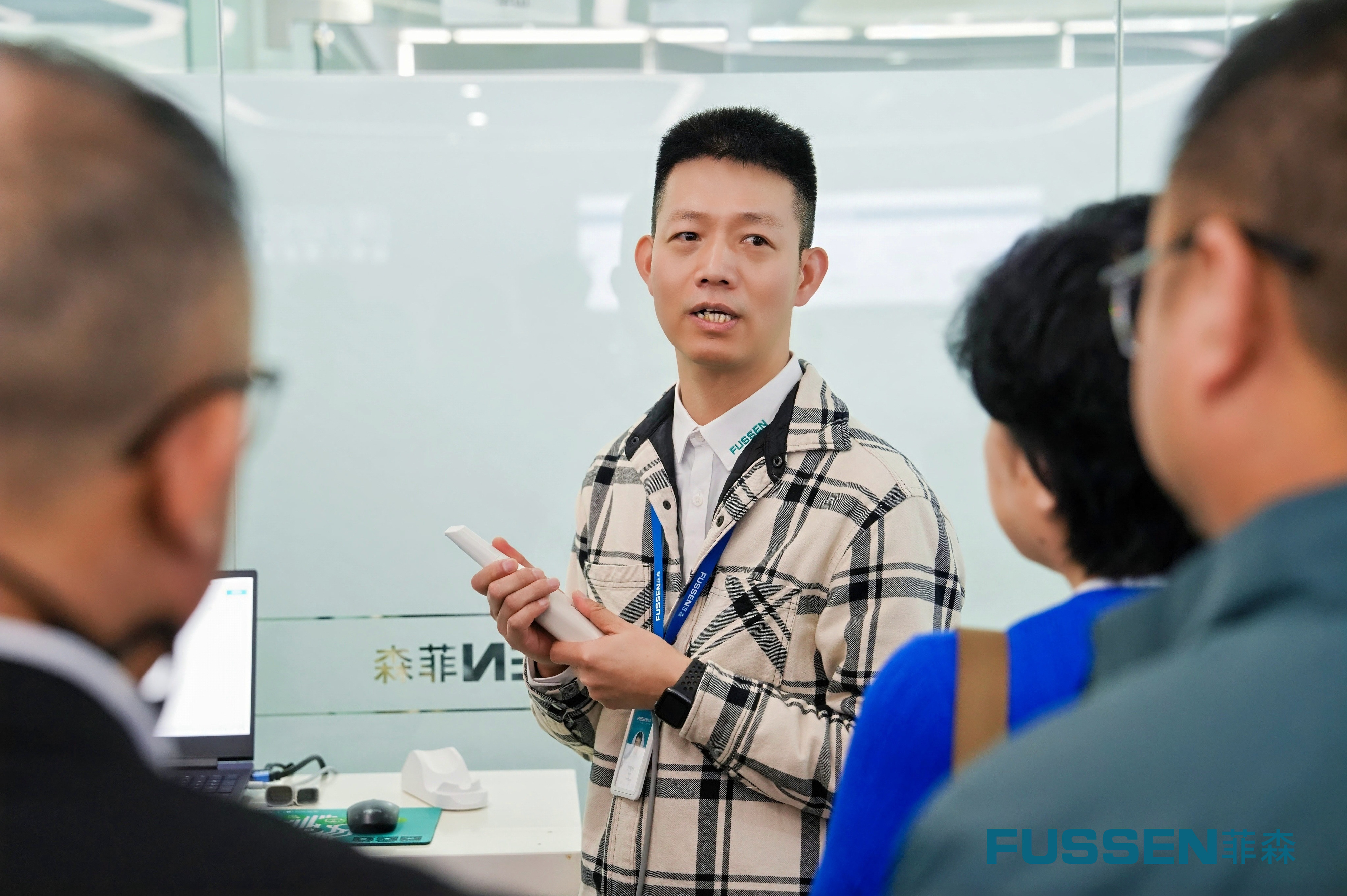 菲森總經理劉金池、光學產品營銷總經理郭東方等管理層熱情接待了企業家代表團,系統介紹了菲森長期發展戰略、創新業務體系以及全鏈路產品矩陣。